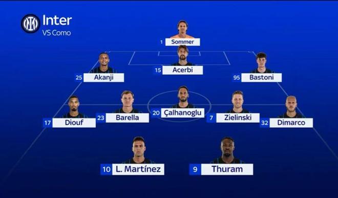 一众主力重回首发,变动点有三:其一,刚刚找到感觉、并在意大利杯比赛当中打满全场的迪乌夫出现在了首发右边翼卫的位置;其二,拖后中卫阿切尔比再次首发;其三,姆希塔良继续替补,泽林斯基首发。